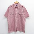 【商品名】 XL★古着 半袖 シャツ メンズ 90年代 90s 大きいサイズ 赤他 ストライプ