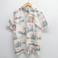 XL★古着 半袖 シャツ メンズ 90年代 90s 魚 総柄 コットン ボタンダウン 薄ベージュ他
