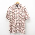 XL★古着 半袖 シャツ メンズ 00年代 00s 総柄 大きいサイズ コットン ベージュ他