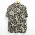 XL★古着 半袖 シャツ メンズ 90年代 90s 総柄レーヨン 黒他