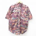 【商品名】 XL★古着 半袖 シャツ メンズ 00年代 00s 総柄 コットン ボタンダウン 紫他
