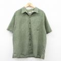 XL★古着 半袖 シャツ メンズ 総柄 開襟 オープンカラー 緑系