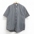 L★古着 半袖 シャツ メンズ コットン ボタンダウン エンジ他 ストライプ