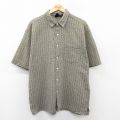 【商品名】 L★古着 半袖 シャツ メンズ シアサッカー コットン 緑系他 チェック
