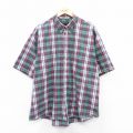 【商品名】 XL★古着 バンヒューセン 半袖 シャツ メンズ 大きいサイズ ボタンダウン 緑他 チェック