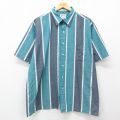 【商品名】 XL★古着 アロー 半袖 シャツ メンズ 大きいサイズ 青緑他 ストライプ