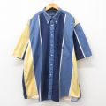 XL★古着 半袖 シャツ メンズ 大きいサイズ ロング丈 コットン ボタンダウン 紺他 ストライプ