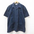 【商品名】 XL★古着 半袖 キューバ シャツ メンズ 刺繍 大きいサイズ ロング丈 紺