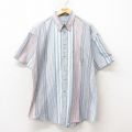 L★古着 半袖 シャツ メンズ ロング丈 マルチカラー ボタンダウン グレー他 ストライプ 25jun10 中古 トップス