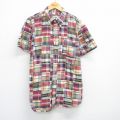 XL★古着 半袖 シャツ メンズ 大きいサイズ ボタンダウン 赤他 チェック