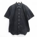 XL★古着 半袖 シャツ メンズ 90年代 90s 大きいサイズ ロング丈 コットン オックスフォード ボタンダウン 黒他 ブラック ストライプ 25jun14 中古 トップス