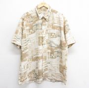 XL★古着 半袖 シャツ メンズ 00年代 00s 総柄 大きいサイズ ボタンダウン ベージュ他