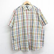 XL★古着 半袖 シャツ メンズ 00年代 00s 大きいサイズ コットン ボタンダウン 黄色他 チェック