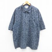 XL★古着 半袖 シャツ メンズ 00年代 00s 葉 総柄 大きいサイズ コットン ボタンダウン 紺他