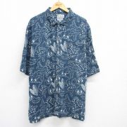 XL★古着 コロンビア 半袖 シャツ メンズ 00年代 00s 葉 総柄 大きいサイズ 紺他