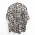 XL★古着 半袖 シャツ メンズ 90年代 90s 総柄 ロング丈 グレー