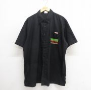 XL★古着 半袖 シャツ メンズ バーガーキング 大きいサイズ ロング丈 ボタンダウン 黒