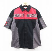 L★古着 半袖 シャツ メンズ バレットジャクソン マルチカラー コットン 黒他 内側メッシュ