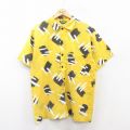 【商品名】 L★古着 半袖 シャツ メンズ 80年代 80s 総柄 USA製 黄