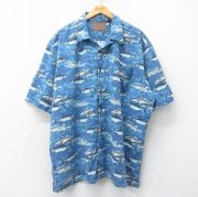 XL★古着 半袖 シャツ メンズ 90年代 90s 魚 大きいサイズ コットン USA製 紺他