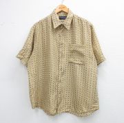 XL★古着 半袖 シャツ メンズ 00年代 00s 総柄 大きいサイズ シルク ベージュ系他
