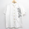 XL★古着 半袖 シャツ メンズ 龍 ッ刺繍 ノーカラー 白 ホワイト 25jun17 中古 トップス