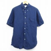 L★古着 ブルックスブラザーズ 半袖 ブランド シャツ メンズ リネン ボタンダウン 紺
