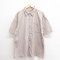 XL★古着 半袖 シャツ メンズ 00年代 00s 大きいサイズ ロング丈 コットン 薄ベージュ他 カーキ チェック 25jun18 中古 トップス
