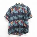 L★古着 半袖 シャツ メンズ 花柄 コットン 紺他