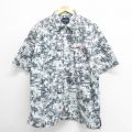 XL★古着 半袖 シャツ メンズ 00年代 00s 葉 総柄 大きいサイズ コットン ボタンダウン 紺他