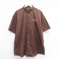 XL★古着 半袖 シャツ メンズ 大きいサイズ ロング丈 コットン ボタンダウン 茶系