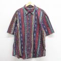 【商品名】 XL★古着 半袖 シャツ メンズ 90年代 90s ネイティブ柄 ラグ柄 大きいサイズ ロング丈 薄紺他 ストライプ