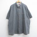 【商品名】 XL★古着 トミーヒルフィガー 半袖 ブランド シャツ メンズ 90年代 90s ワンポイントロゴ 大きいサイズ ロング丈 コットン ボタンダウン 紺他 チェック【spe】