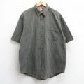 XL★古着 半袖 シャツ メンズ 90年代 90s ロング丈 コットン USA製 グレー他 ストライプ