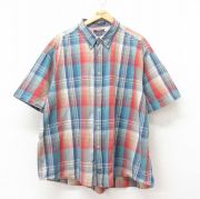 XL★古着 半袖 シャツ メンズ 00年代 00s 大きいサイズ ロング丈 コットン ボタンダウン オレンジ他 チェック