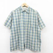 XL★古着 半袖 シャツ メンズ 00年代 00s 大きいサイズ ロング丈 コットン 薄ベージュ他 チェック