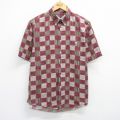 【商品名】 L★古着 半袖 シャツ メンズ 00年代 00s 総柄 コットン ボタンダウン エンジ他 チェック
