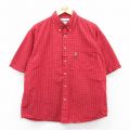 XL★古着 ラングラー 半袖 シャツ メンズ 大きいサイズ コットン ボタンダウン 赤他 チェック