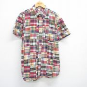 XL★古着 JOS A BANK 半袖 シャツ メンズ パッチワーク コットン ボタンダウン 赤他 チェック