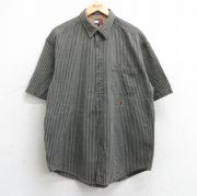 XL★古着 トミーヒルフィガー 半袖 ブランド シャツ メンズ 90年代 90s ワンポイントロゴ ロング丈 コットン 濃グレー系他 ストライプ