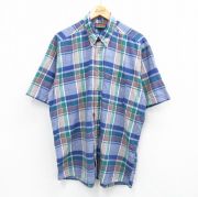 XL★古着 半袖 シャツ メンズ 00年代 00s コットン ボタンダウン 薄紺他 チェック
