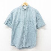 M★古着 半袖 シャツ メンズ 00年代 00s コットン 青緑 ストライプ