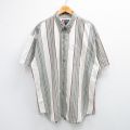 XL★古着 半袖 シャツ メンズ 00年代 00s 大きいサイズ ロング丈 コットン ボタンダウン ベージュ他 ストライプ