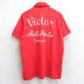 【商品名】 L★古着 ヒルトン 半袖 ハーフジップ ボウリング シャツ メンズ 90年代 90s Victor 刺繍 チェーンステッチ刺繍 ラグラン USA製 赤他【spe】
