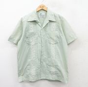 L★古着 半袖 キューバ シャツ メンズ 90年代 90s 刺繍 開襟 オープンカラー 薄緑系