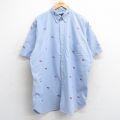 XL★古着 半袖 シャツ メンズ 00年代 00s オックスフォード 大きいサイズ ロング丈 ボタンダウン 薄紺