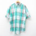 【商品名】 L★古着 アロー 半袖 シャツ メンズ 90年代 90s ロング丈 ボタンダウン USA製 緑他 チェック