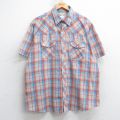 XL★古着 ラングラー 半袖 ウエスタン シャツ メンズ 赤他 チェック