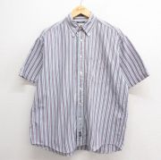 XL★古着 半袖 シャツ メンズ 90年代 90s 大きいサイズ コットン ボタンダウン 白他 ストライプ