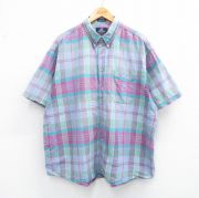 XL★古着 半袖 シャツ メンズ 大きいサイズ コットン ボタンダウン 紫他 チェック